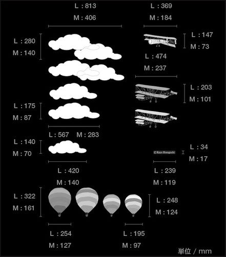 ちょっとレトロなデザインの飛行機も、元気なカラーの気球もとても可愛いカラフルさです。
